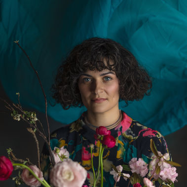 These portrait sessions include fresh flowers, fabrics, or other items to enhance drama and allow for creativity.